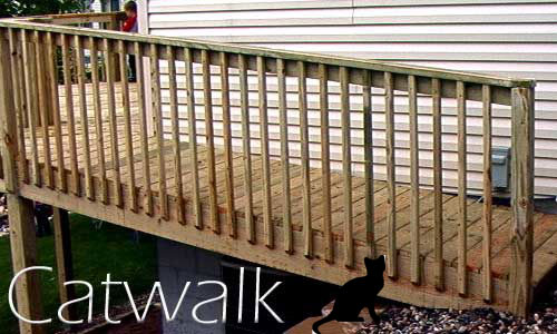 a step or two lower, and directs traffic to a good spot below.
