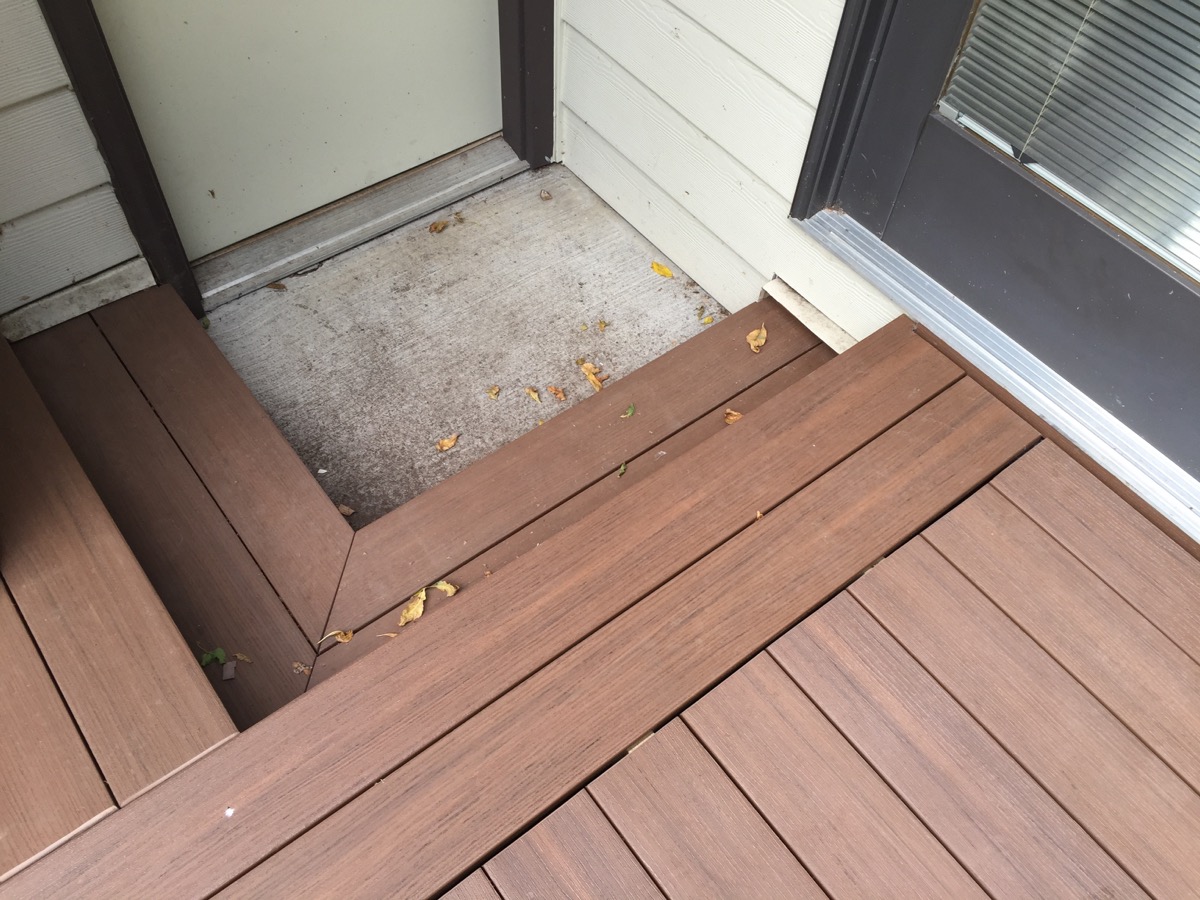 is ideal spot for landing to access patio below. not as costly as an "L"