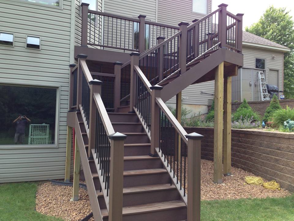 nicely for patio below, requires no more posts than 4 x4 landing of 90